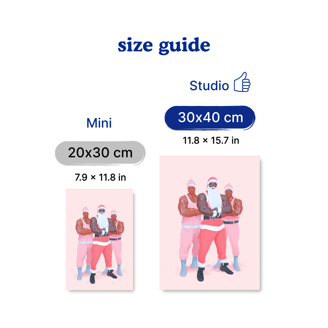 Because it’s impossible not to smile while painting Santa’s very dramatic flex. The colours are warm and inviting, the shapes are simple to fill in, and the finished piece is guaranteed to be the funniest (and maybe cutest) thing on your wall this Christmas.