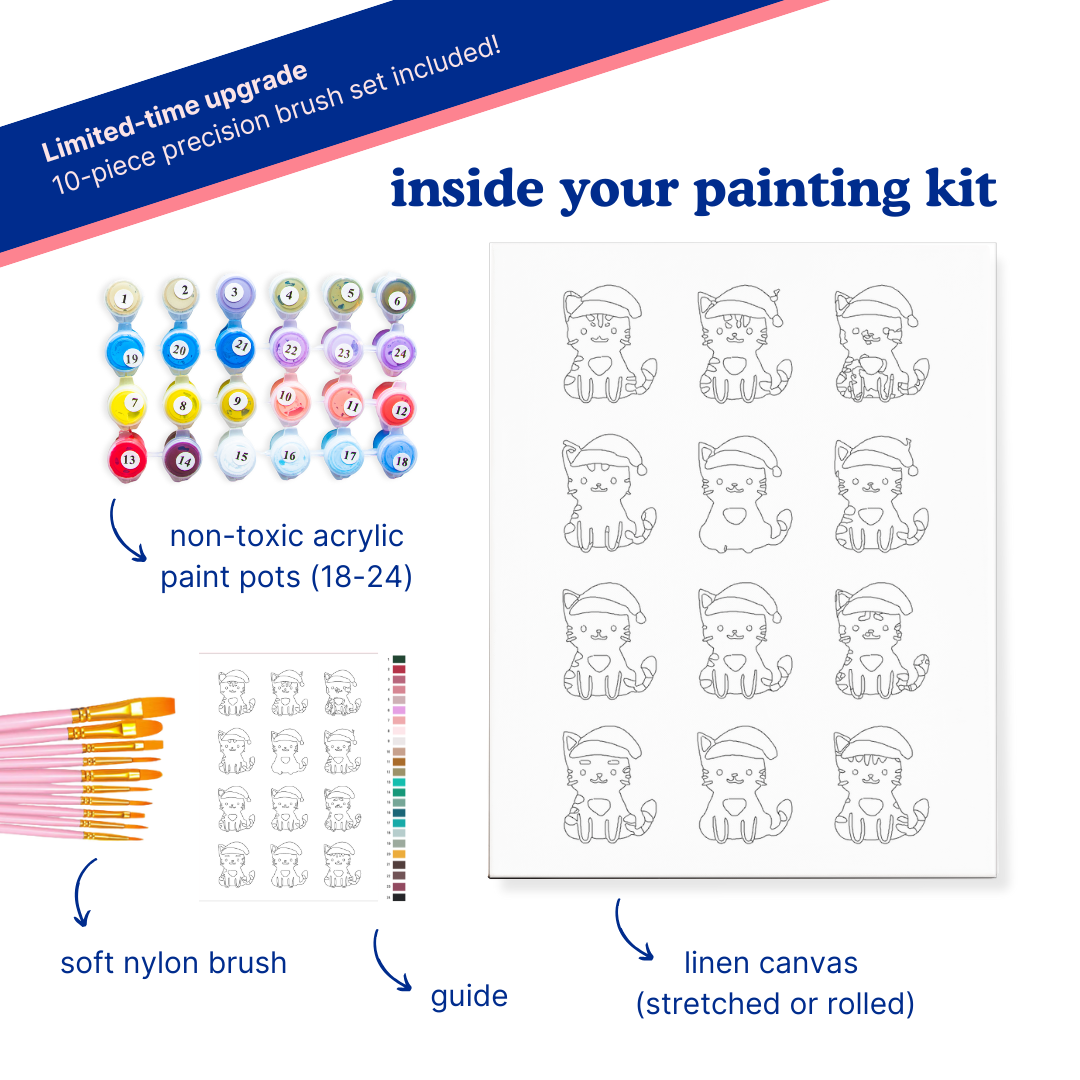 A festive paint-by-numbers kit for cat lovers, cozy painters, and holiday joy-seekers.